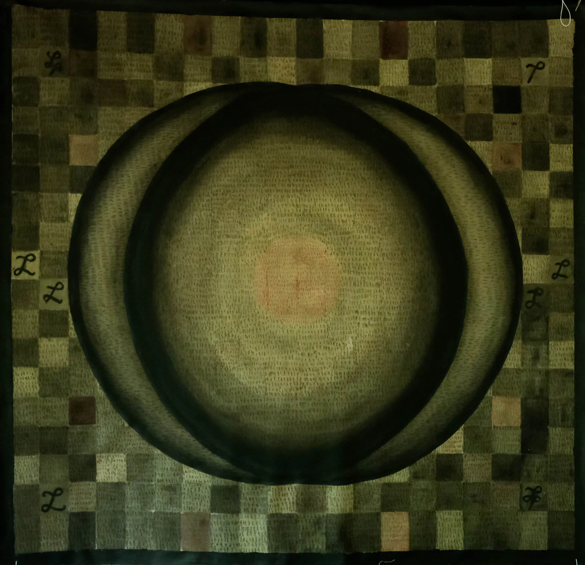 This second painting ceremony by Samuel interrogates elements of Christianity and traditional divinity through an iconographic mosaic that echoes pre-Columbian history and its anthropomorphic forms. These symbols of spirituality become the stage for a live music performance by his brother Sergio, who composes a sonic ambience weaving together elements of prayer and environment, surrounding the work with a sacred aura.