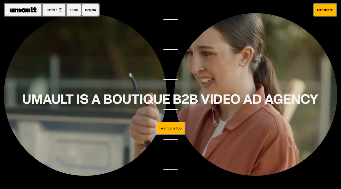 We went to town with Umault. Delivering the best B2B ads in the world we launched a site that match their boldnes and impact with custom graphics and a unique page flow and ui design. We anchored the 2 circles from the existing logo as the gravitational force to their new web experience.